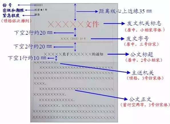 ·¢ÎÄ»ú¹Ø±êÖ¾ÓÉ·¢ÎÄ»ú¹ØÈ«³Æ¼Ó"ÃüÁî"»ò"Áî"×Ö×é³É£¬¾ÓÖÐÅŲ¼£¬ÉϱßÔµÖÁ°æÐÄÉϱßԵΪ20 mm,ÍÆ¼öʹÓúìɫС±êËÎÌå×Ö¡£