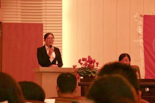 接下来第九届学生社团联合会主席李倩同学向参会代表做了2016-2017年度工作报告,她从社团联合会开展的重大活动及管理制度变更等方面向参会代表和团委老师做了汇报。她说社联成立九年来,一直以团结、大气、奉献、 友爱为原则,为同学、为社联贡献自己的力量。