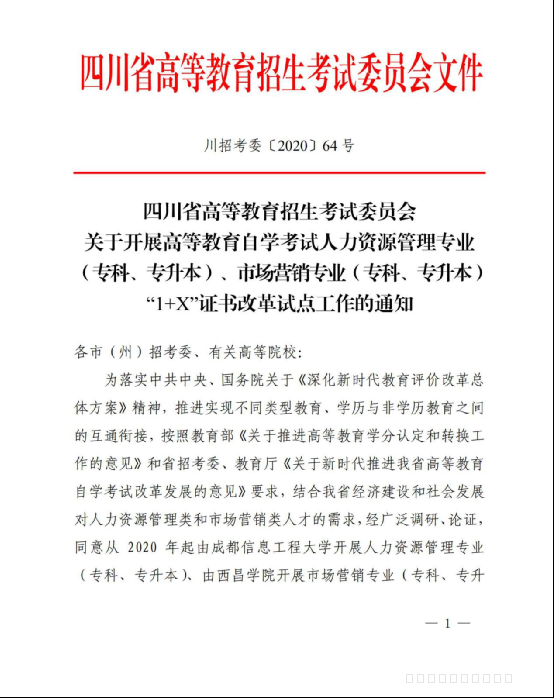 2020Äê11ÔÂ17ÈÕËÄ´¨Ê¡¸ßµÈ½ÌÓýÕÐÉú¿¼ÊÔίԱ»áÏ·¢¡¶ËÄ´¨Ê¡¸ßµÈ½ÌÓýÕÐÉú¿¼ÊÔίԱ»á¹ØÓÚ¿ªÕ¹¸ßµÈ½ÌÓý×Ôѧ¿¼ÊÔÊг¡ÓªÏúרҵ£¨×¨¿Æ¡¢×¨Éý±¾£©¡°1+X¡±Ö¤Êé¸Ä¸ïÊԵ㹤×÷µÄ֪ͨ¡·£¨´¨Õп¼Î¯¡¾2020¡¿64ºÅ£©¡£Åú×¼Î÷ºþѧԺ¿ªÕ¹¸ßµÈ½ÌÓý×Ôѧ¿¼ÊÔÊг¡ÓªÏúרҵÊԵ㹤×÷¡£¿¼Éú¿Éͨ¹ý²Î¼ÓÖйúÊг¡¸Úλˮƽ֤Ê鿼ÊÔ£¬Äõ½¡¶ÖйúÊг¡¸Úλˮƽ֤Êé¡·ºó¿ÉÉêÇëµÖÃâ×Ôѧ¿¼ÊÔÊг¡ÓªÏúרҵµÄ3ÃÅͳ¿¼ºÍ2ÃÅУ¿¼¡£