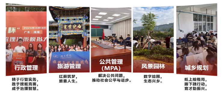 ¡¡¡¡ÂÃÓÎÓë³ÇÏç¹æ»®Ñ§Ôº³ÉÁ¢ÓÚ2016Äê12Ô£¬2023Äê10Ô¼ӹҹ«¹²¹ÜÀíÑ§ÔºÅÆ×Ó¡£2024Äê10Ô»ñÅú¹«¹²¹ÜÀíרҵ˶ʿ£¨MPA£©°ìѧ£¬2025Äê9ÔÂÊ×½ìMPAÑо¿ÉúÕýʽ¿ª°à¡£ÏÖÓÐÐÐÕþ¹ÜÀí¡¢ÂÃÓιÜÀí¡¢³ÇÏç¹æ»®¡¢·ç¾°Ô°ÁÖ±¾¿Æ×¨Òµ4¸ö£¬¹«¹²¹ÜÀí£¨MPA£©Ë¶Ê¿µã1¸ö¡£