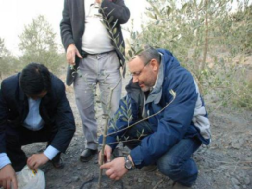 2009年希腊油橄榄专家乔治?科斯代林罗先生和索帝?沙利先生在中泽公司油橄榄基地指导油橄榄种植。