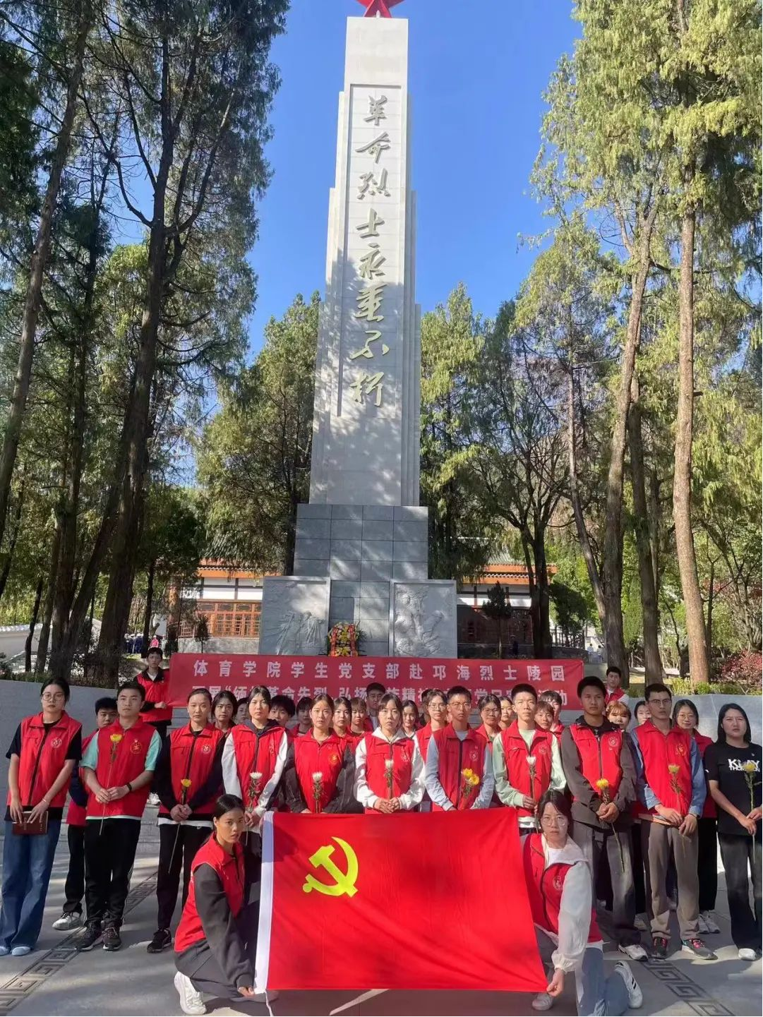 ÔÚÀÏʦµÄ´øÁìÏ£¬°Ñ¾Õ»¨Ä¬Ä¬µØÏ׸øÕâЩÍçÇ¿ÎÞηµÄÁÒÊ¿ÃÇ£¬±íʾÎÒÃÇ×î³ç¸ßµÄ¾´Ò⣬ÔÚÚöº£ÁÒÊ¿ÁêÔ°¼Àɨ»î¶¯ÏÖ³¡£¬Ïò¸ïÃüÁÒÊ¿¾´Ï×¾Õ»¨£¬È»ºóÈ«ÌåʦÉúĬ°§Èý·ÖÖÓ£¬ÏòÁÒÊ¿Èý¾Ï¹ª¡£