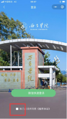 4.¹´Ñ¡¡°ÎÒÒÑÔĶÁ²¢Í¬Òâ¡¶·þÎñÐÒé¡·¡±£¬µã»÷¡°Î¢ÐÅ¿ìËٵǼ¡±¡£