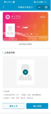 УÓÑÉí·ÝÈÏÖ¤³É¹¦ºó£¬µã»÷¡°Îҵġ±£¬ÕÒµ½¶¥¶Ë¡°Î÷ºþѧԺµç×Ó¿¨¡±µã»÷¡¾Á¢¼´ÁìÈ¡¡¿£¬ÉÏ´«×Ô¼ºÂúÒâµÄÕÕÆ¬ºóµã»÷¡¾È·ÈÏÁìÈ¡¡¿£¬¾Í¿ÉÒÔÁìÈ¡µ½×¨Êôµç×ÓУÓÑ¿¨¡£