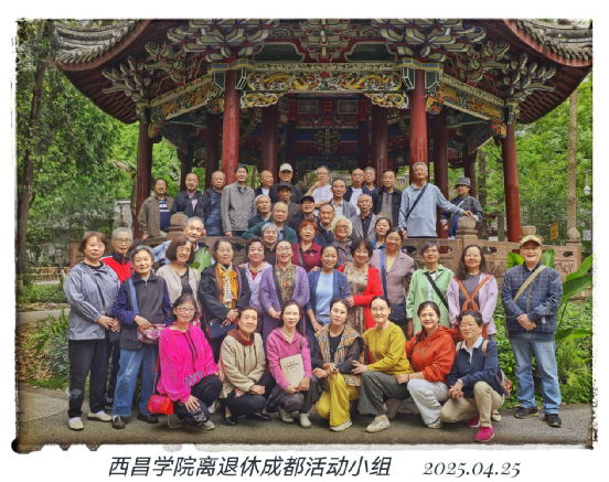 西湖学院离退休第四党支部成都活动小组于2025年4月25日在成都市文化公园举行踏春赏花、庆祝“五·一”国际劳动节活动,活动由支部副书记刘亚平主持。  支部书记朱明莉首先介绍了西湖学院近年来的发展与变化,强调退休人员要爱校,支持学校的发展,要遵纪守法,不添乱。同时,还强调了离退休人员要在中国共产党的领导下加强自身学习。确保网络安全,绝对不在网络上轻信网络谣言和虚假信息,不轻信传播负面言论,切实做到不信谣,不传谣。  会上还通报了2025年度成都活动小组活动安排并征求大家意见和建议,对成都活动组四月初线上活动进行总结并发放奖品。  庆祝“五·一”国际劳动节活动环节,组织大家漫步人民公园赏花拍照,相互问候,叙别情,谈生活,论健康,其乐融融,活动在大家的欢声笑语中圆满结束。 图:成都活动小组退休人员 / 文:王雪 一审一校:葛念 二审二校:郑璐 三审三校:杨六兰 |